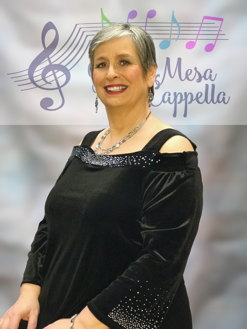 Susanna was born and raised in Germany and moved to Colorado in 1993 where she found Sweet Adelines. She has been singing baritone from the start with a short visit to the bass section due to a shortage of basses. During her 20 plus years with Del-Rose Chorus she has been a section leader, chorus president, assistant director and front line Director. Now a member of Grand Mesa A Cappella, she enjoys being Co-Director with Colette Mayers. She continues to sing as a member on the risers and with Steppin’UP! Quartet.